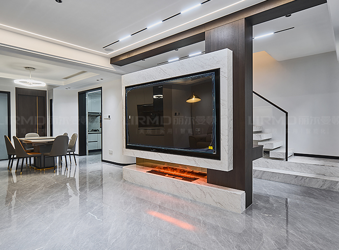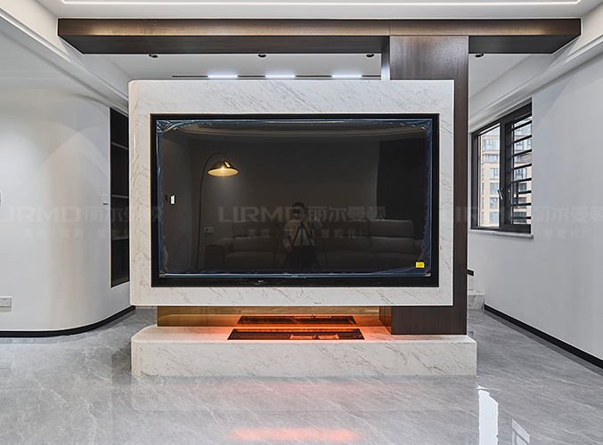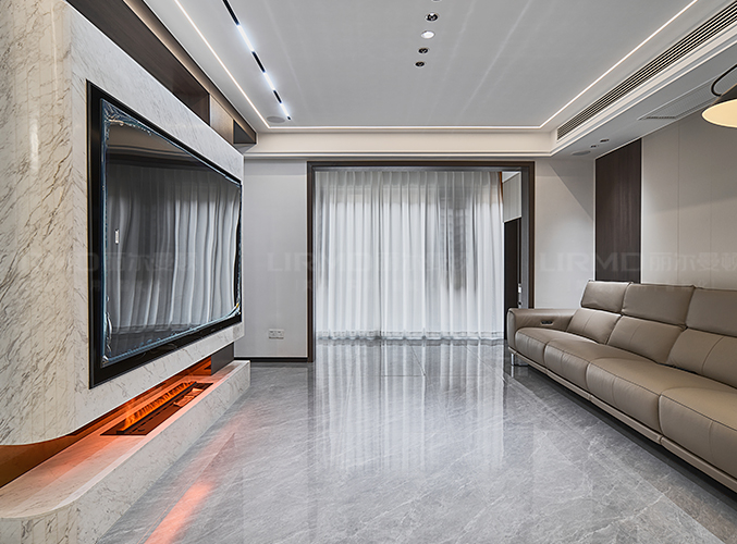全屋瓷磚通鋪,顯大顯明亮,采光好,內嵌式電視背景墻設計,方便實用。