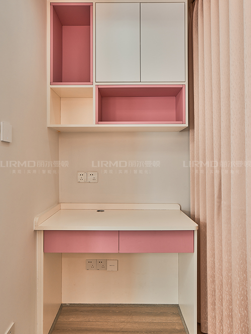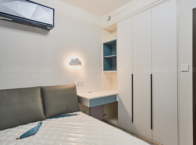 衣柜+收納柜+書桌柜,多組定制柜設計更是實現收納需求,精致感與舒適度拿捏的恰到好處~