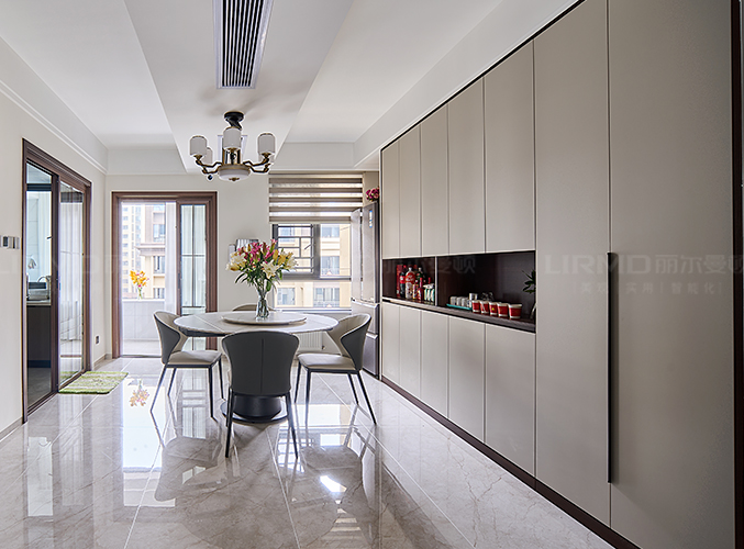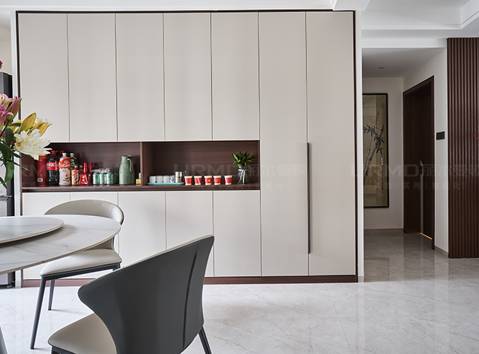 整體的墻柜很好的利用空間,收納大大的提升,無拉手設(shè)計(jì),更顯極簡(jiǎn)。