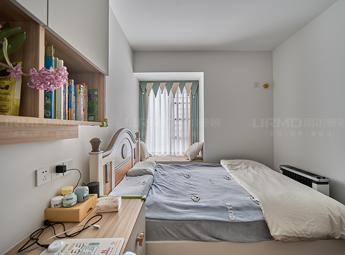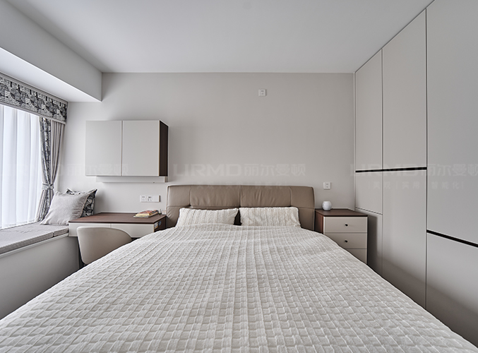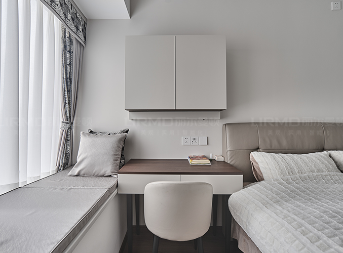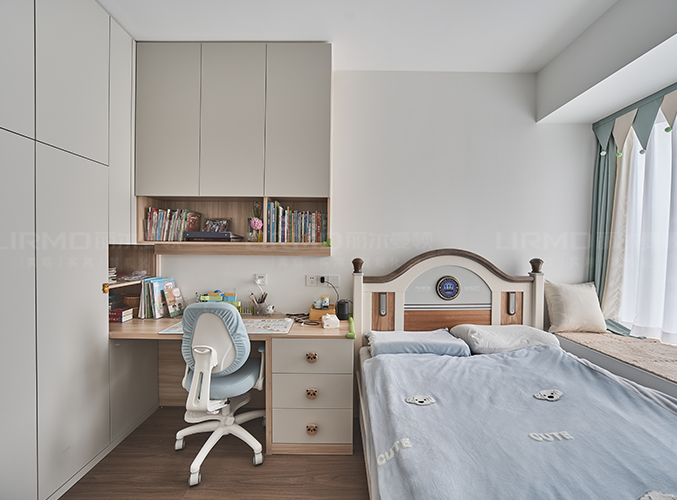 采用衣柜書桌一體設(shè)計(jì),既能儲物又能學(xué)習(xí)。