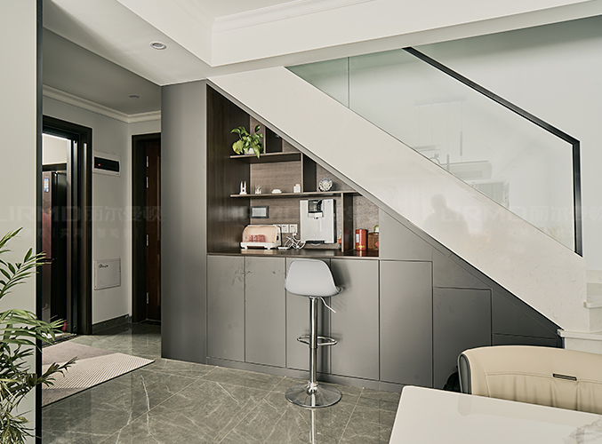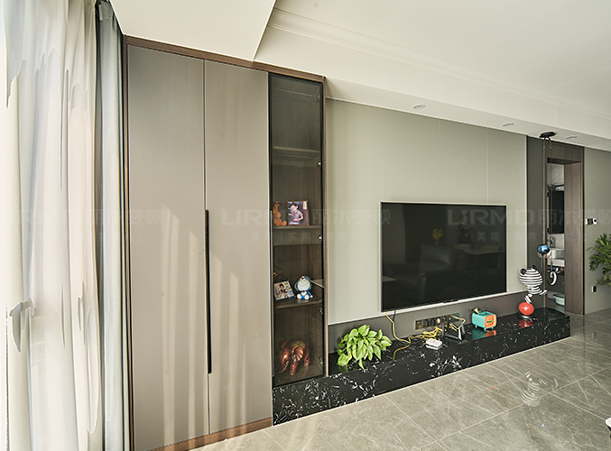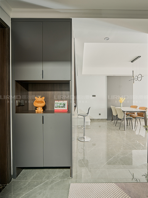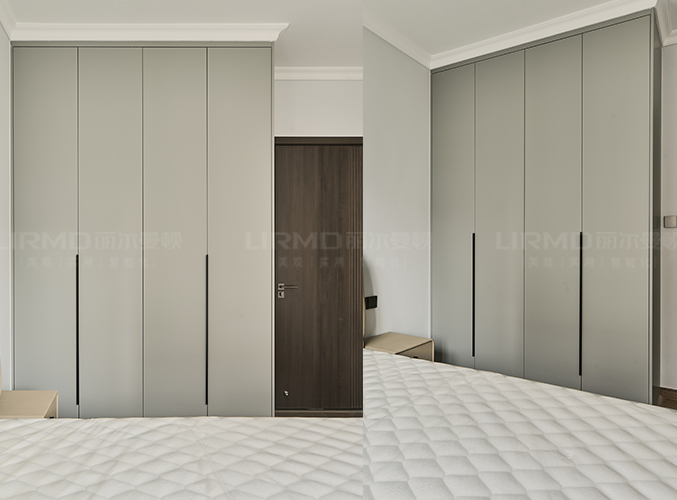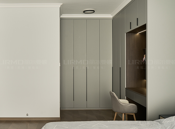 多組一門到頂柜子設計更是實現(xiàn)收納需求,整體顏色統(tǒng)一,美觀且大氣。