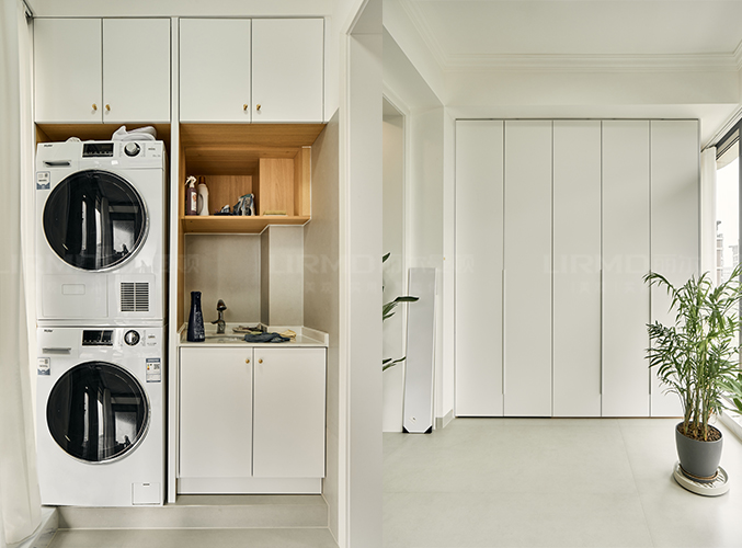 陽臺采光好,內(nèi)嵌式洗衣機設(shè)計,加上洗漱柜設(shè)計,不占空間,一門到頂柜子設(shè)計,盡顯大氣。