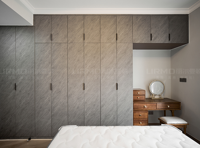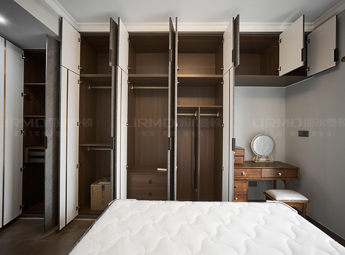 深色一柜到頂衣柜加化妝柜的設計,美觀且大氣,多組設計更是實現收納需求,