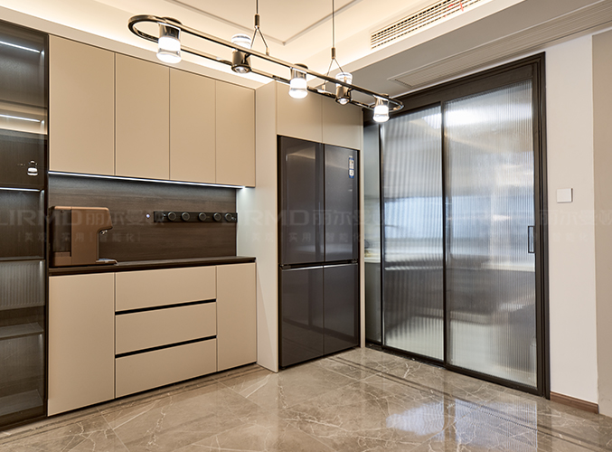 餐廳與廚房用長虹玻璃隔開,既通透又保留隱秘性。