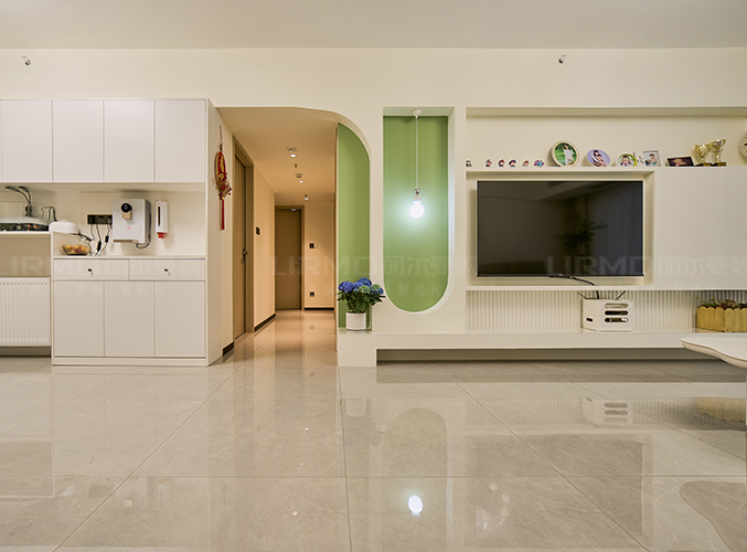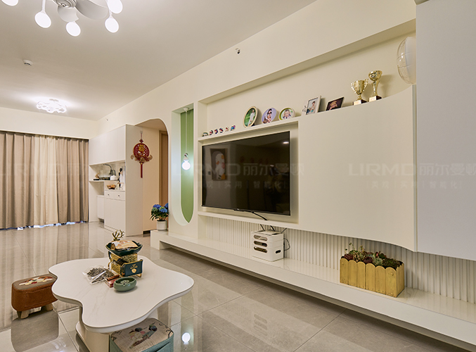 電視墻做石膏內(nèi)嵌,開放空間擺設更隨心。