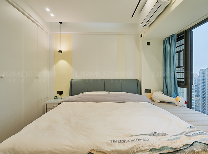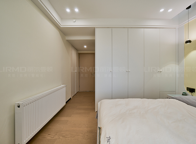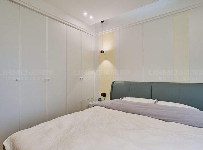 實木柜體搭配PET膚感柜門,一門到頂,無主燈設計營造空間增次,,整體顏色統(tǒng)一,美觀且大氣。