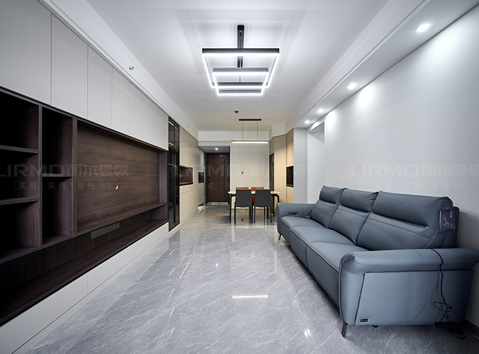 整屋通鋪瓷磚,盡顯大氣,電視背景墻采用整面墻設(shè)計(jì),整體效果不顯沉悶,