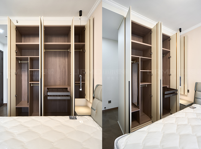 實(shí)木柜體搭配PET膚感柜門,質(zhì)感超不錯(cuò),多組一門到頂柜子設(shè)計(jì)更是實(shí)現(xiàn)收納需求,