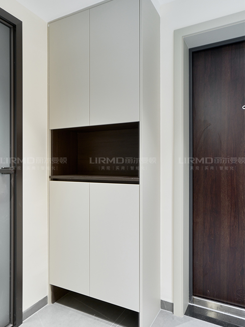 雙一字鞋柜,18mm厚杉木芯板,中間做開放格,可以放置鑰匙包包等物品,