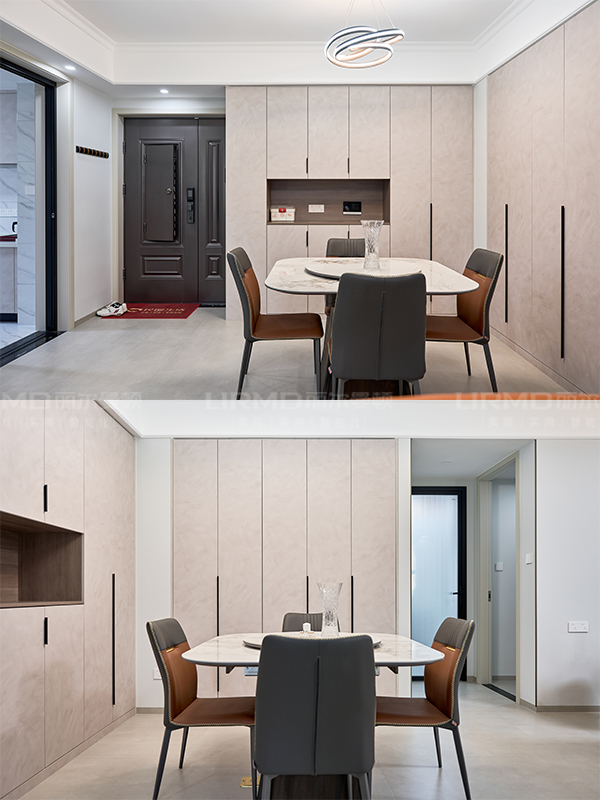 10、柜體采用足18厚杉木芯板,柜門采用LSB板PET膚感柜門,一門到頂,五金使用原裝進口的百隆五金