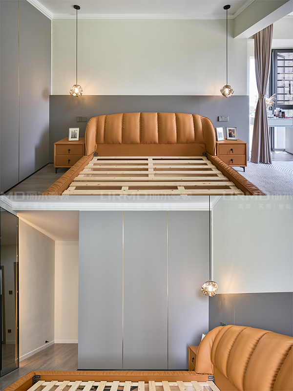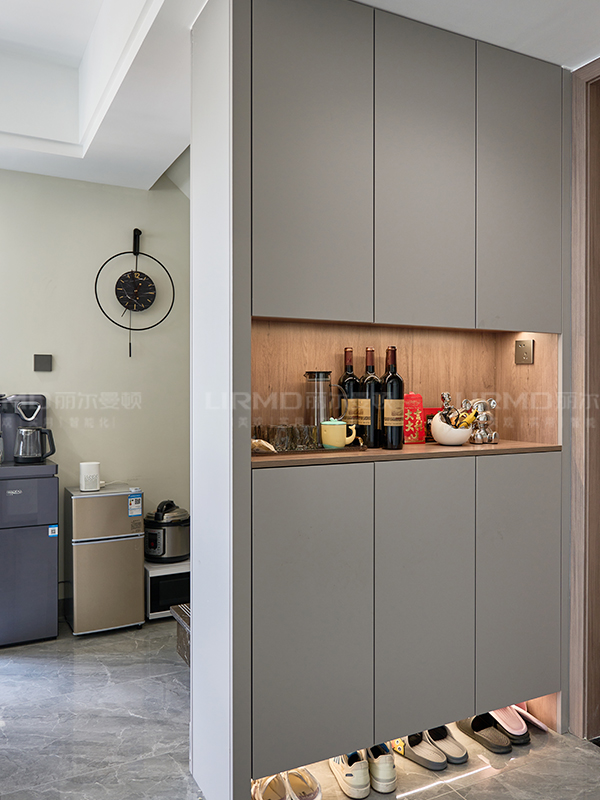 柜體采用足18厚杉木芯板,柜門(mén)采用LSB板PET膚感柜門(mén),一門(mén)到頂,五金使用原裝進(jìn)口的百隆五金