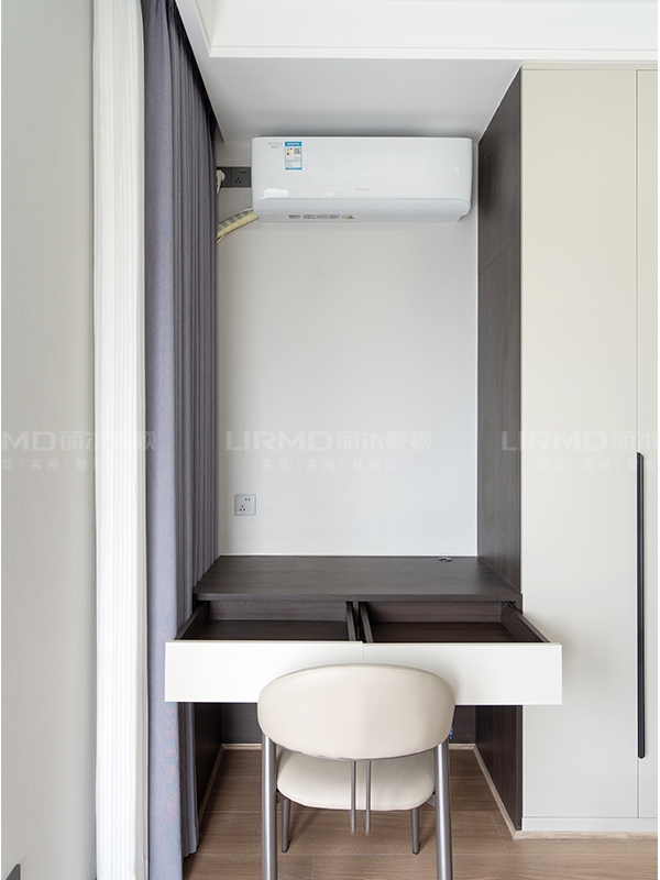 臥室衣柜不僅有常規的長衣短衣區分布設計,還有飾品拉籃,褲架拉籃
