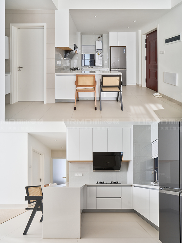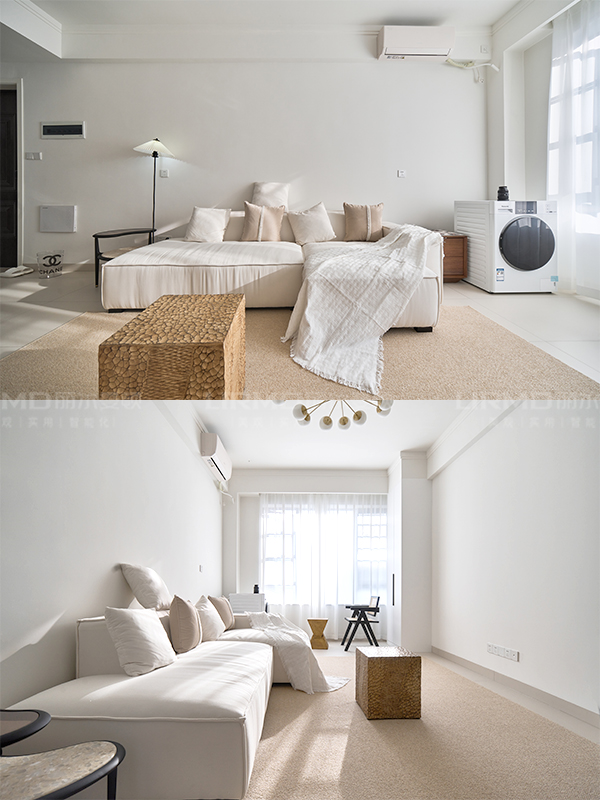 所以,設計師在軟裝上,融合了少量深色和藤編材質(zhì),提升整個空間的質(zhì)感和格調(diào)。