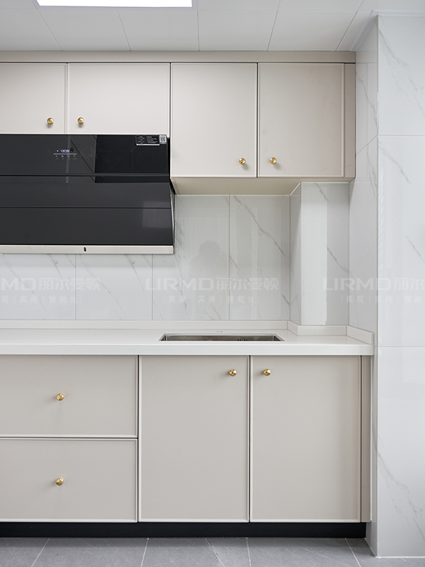 象牙灰的柜門與玻璃柜門的碰撞,更顯精致與優雅
