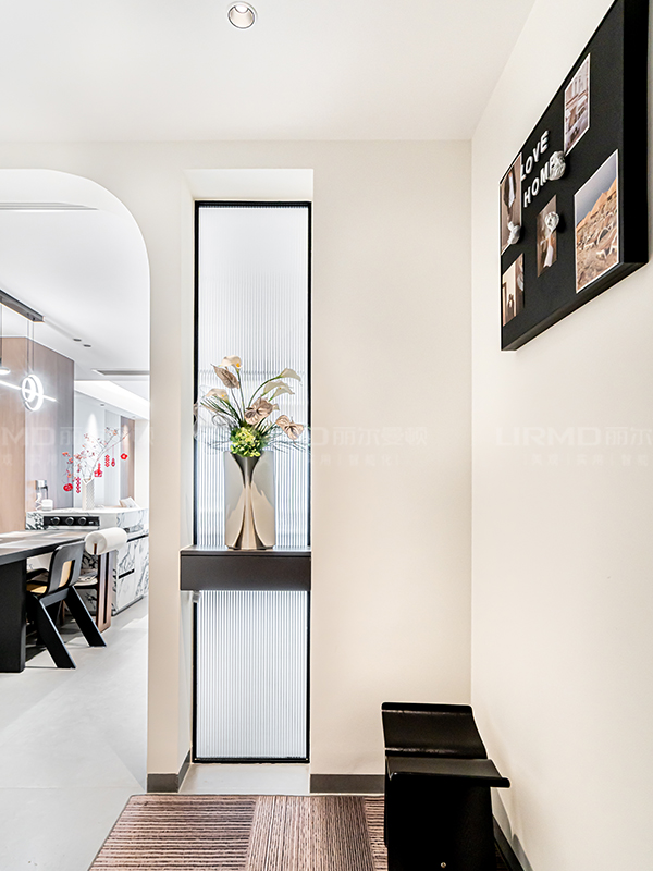 木色元素主要用在了墻板和部分家具上,給冷色調的空間增添了一絲溫暖。