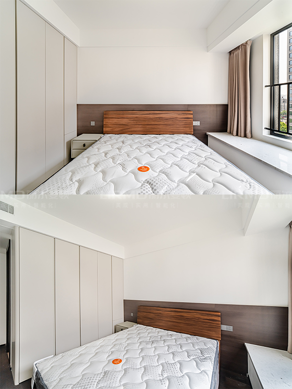 餐廳做了兩組柜子,一組西櫥柜讓生活更便利,對面的展示柜也增加了儲物。房間的都做了護墻板作為裝飾。